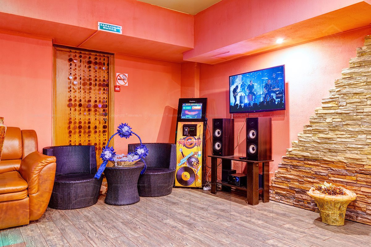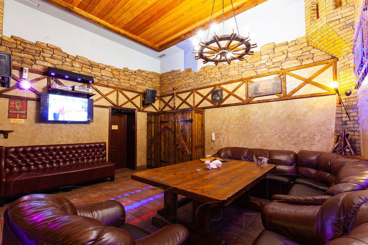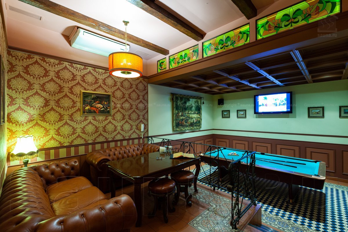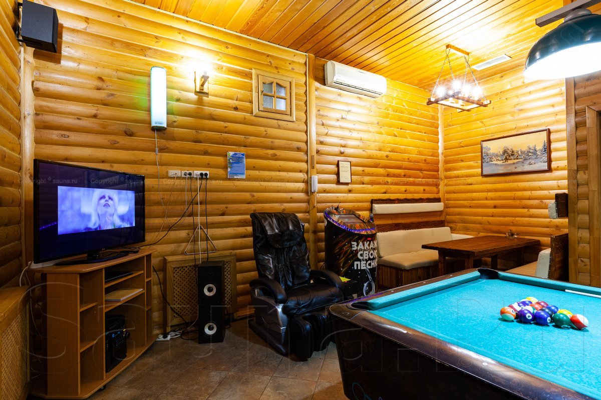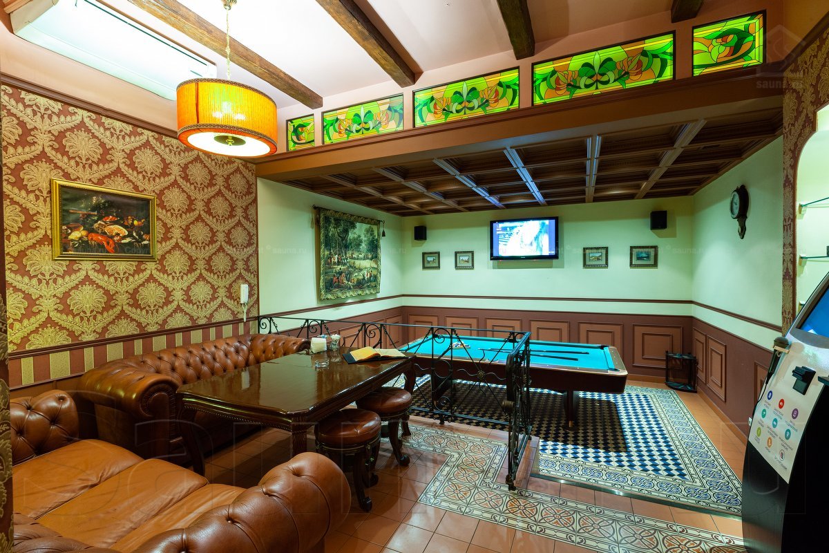 Не хочется в бассейн? Не беда! Вместо этого можно передохнуть в нашей комнате отдыха. Мы ставили своей целью создать здесь уютный, практичный интерьер из преимущественно натуральных, безопасных материалов, подобрать мебель, которая будет в равной степени удобной и приятной глазу. Надеемся, что он придется вам по душе! Для поддержания атмосферы отдыха мы можем предложить вам бильярд, кальян, камин и караоке. Также у нас имеется бар, где вы можете приобрести блюда русской кухни, а при необходимости прийти и со своей едой - мы не возражаем! Главное помните, что плотная трапеза незадолго перед посещением парной - это не самая удачная идея, по мнению докторов. А вот после парной она совсем не повредит!
