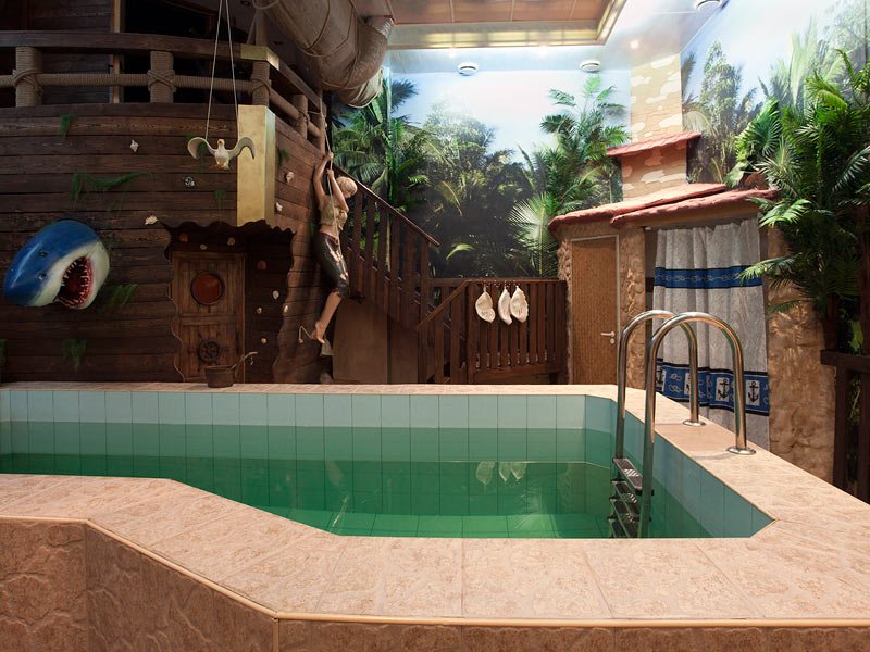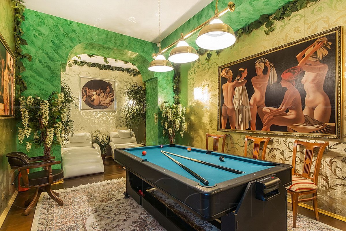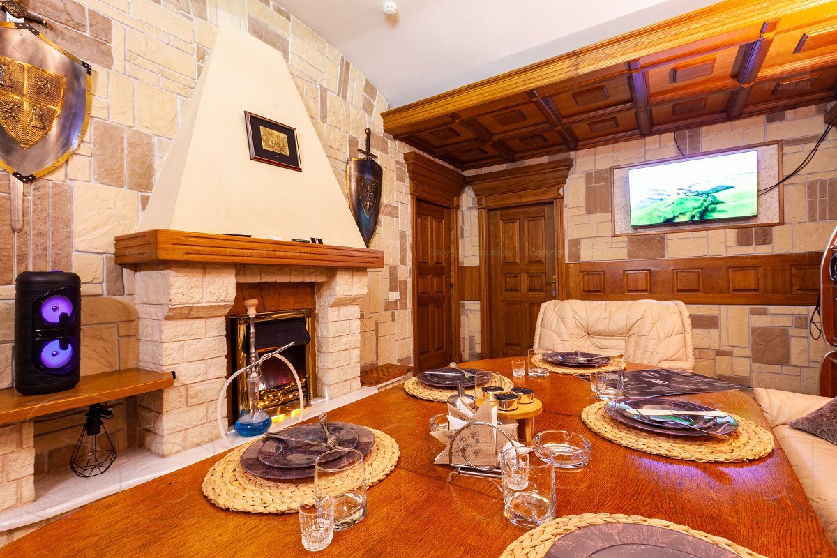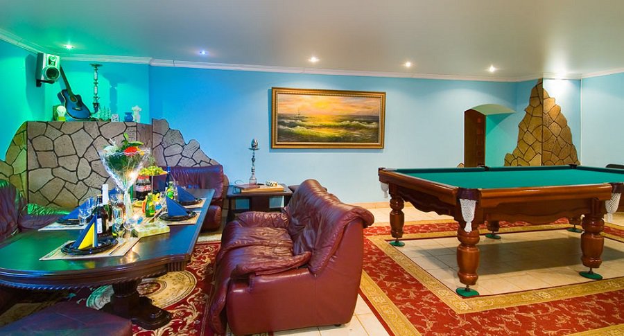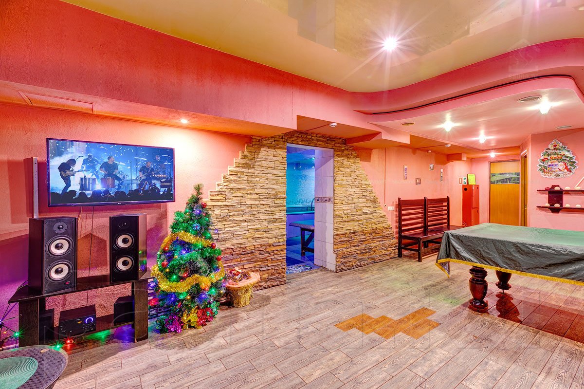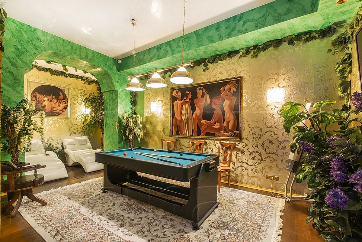 Не хочется в бассейн? Не беда! Вместо этого можно передохнуть в нашей комнате отдыха. Мы ставили своей целью создать здесь уютный, практичный интерьер из преимущественно натуральных, безопасных материалов, подобрать мебель, которая будет в равной степени удобной и приятной глазу. Надеемся, что он придется вам по душе! Для поддержания атмосферы отдыха мы можем предложить вам бильярд, кальян, камин и караоке. Также у нас имеется бар, где вы можете приобрести блюда русской кухни, а при необходимости прийти и со своей едой - мы не возражаем! Главное помните, что плотная трапеза незадолго перед посещением парной - это не самая удачная идея, по мнению докторов. А вот после парной она совсем не повредит!